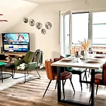 Hier wird eine Küche mit einem Wasserkocher, einem Kühlschrank und einem Herd angeboten. Die Gäste dieses Apartments können den Komfort von Ausstattung zur Kaffee- & Teezubereitung genießen. Das Restaurant der arabischen Küche Die Zeder befindet sich nur 13 Fußminuten von hier entfernt. Die Bushaltestelle Neustadt Schulzentrum Hans-Thoma-Schule liegt direkt neben diesem 74 m^2 großen Apartment.